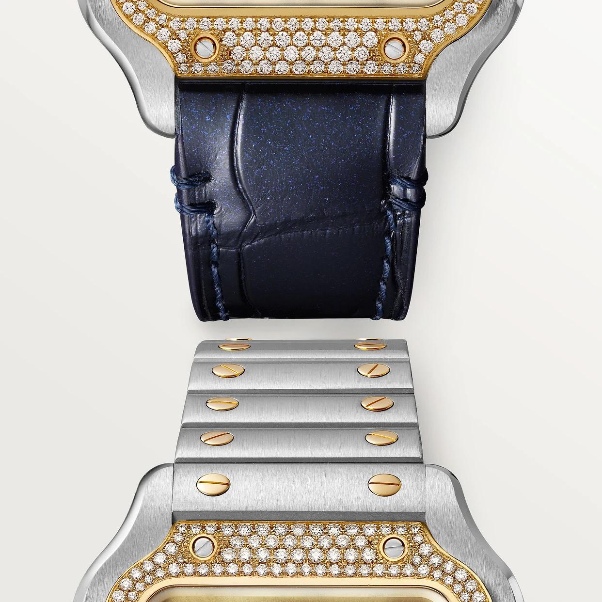 Reloj Cartier Santos, tamaño mediano acero y bisel oro con diamantes. Referencia W3SA0007.