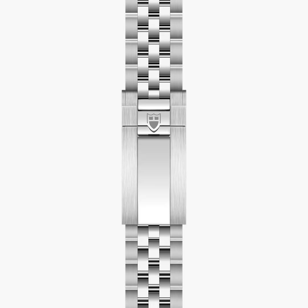 Hay disponible una versión de este modelo acoplada a un brazalete de acero inoxidable de 5 eslabones o un brazalete de acero inoxidable de 3 eslabones con remaches inspirado en los brazaletes remachados desplegables fabricados por TUDOR en los años 50 y 60. Ambos brazaletes cuentan con cierre de TUDOR «T‑fit» con ajuste rápido. Este práctico sistema de fácil manejo, que ofrece cinco posiciones sin necesidad de herramientas, permite a los portadores un ajuste preciso e instantáneo de la longitud total del brazalete hasta 8 mm.Importante: Todos los relojes disponibles en nuestra web son completamente nuevos, sin uso, y cuentan con garantía oficial activada en el momento de la entrega al cliente, en las mismas condiciones que si se adquirieran en una tienda oficial.