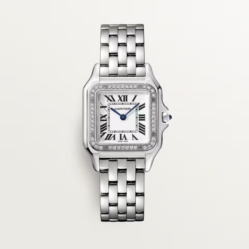 Reloj Panthère de Cartier con diamantes, tamaño mediano en acero. Referencia W4PN0018.